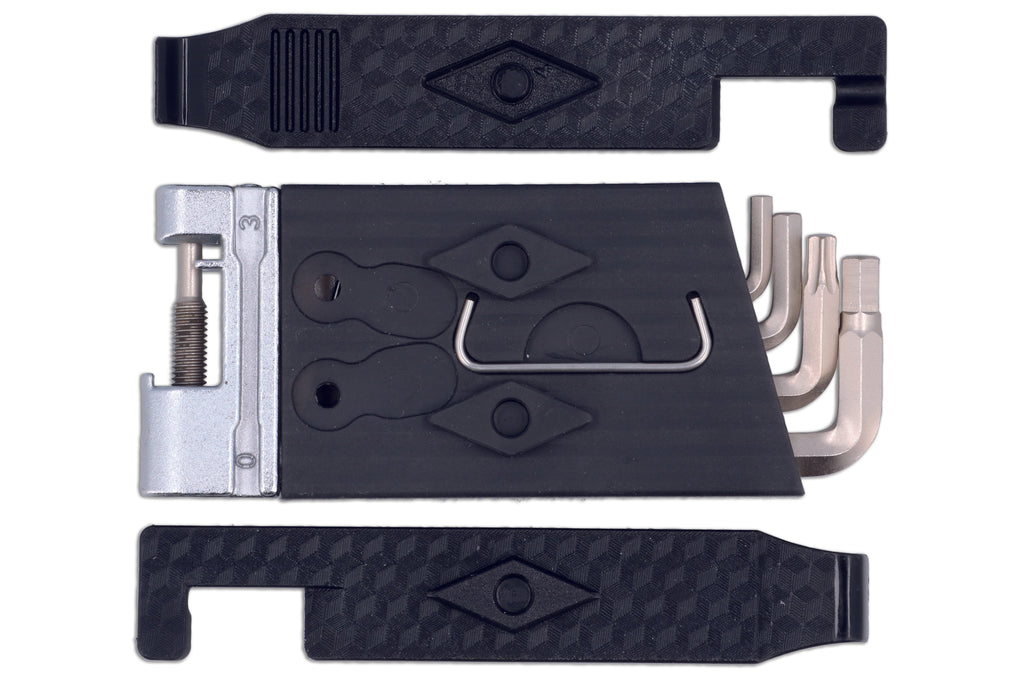 Bringing together 17 tools into one lightweight compact set for easy storage. Contains screwdriver bits, hex and Star* keys as well as tyre levers and a chain splitter tool and even spoke wrenches.